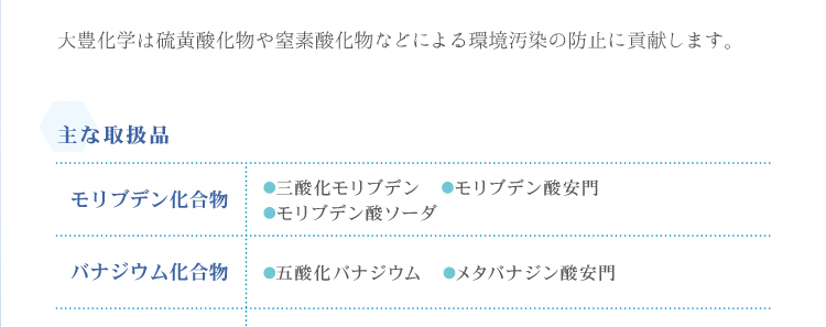 大豊化学は硫黄酸化物や窒素酸化物などによる環境汚染の防止に貢献します。