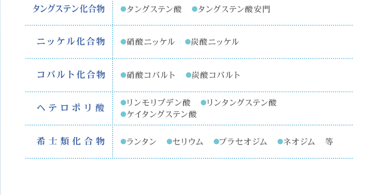 希土類化合物:ランセン/セリウム/プラセオジム/ネオジム 等